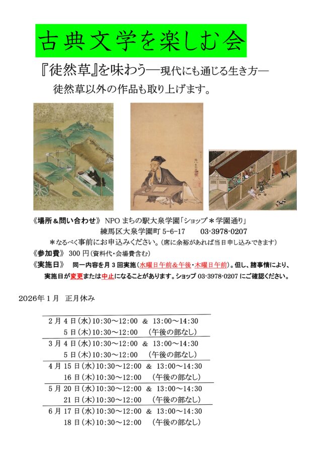 2022年から取り組んでいる「徒然草」も季節や時流に合わせて、飛び飛びに学んできて3/5ぐらいは読み進んできました。
